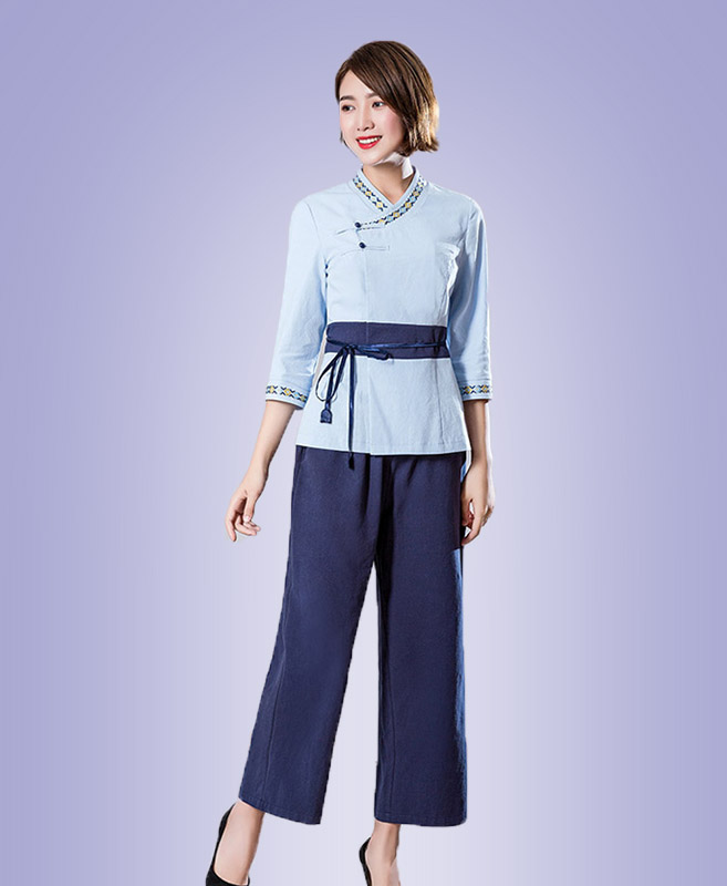 • YDQT201206酒店工作服中式工作服服務(wù)員工作服咖啡廳工作服家政阿姨清潔工服務(wù)員工裝